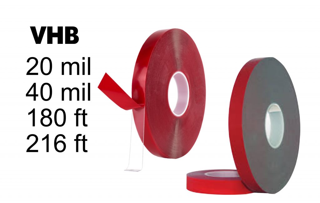 Compare to 3M general purpose VHB.20 mil = 3M 4905, 40 mil = 3m 4910